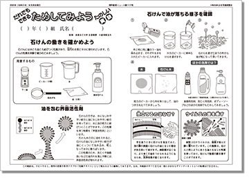 ●2020年9月28日号「油汚れを落とす石けんの働き」の動画をご用意しました。画像をクリック(タップ)すると別ウインドウでファイルが開き、動画が始まります。また、画像からリンク先の動画を保存することもできます。併せて、子ども向けの実験解説のPDFファイルもご用意しました。ご活用ください。