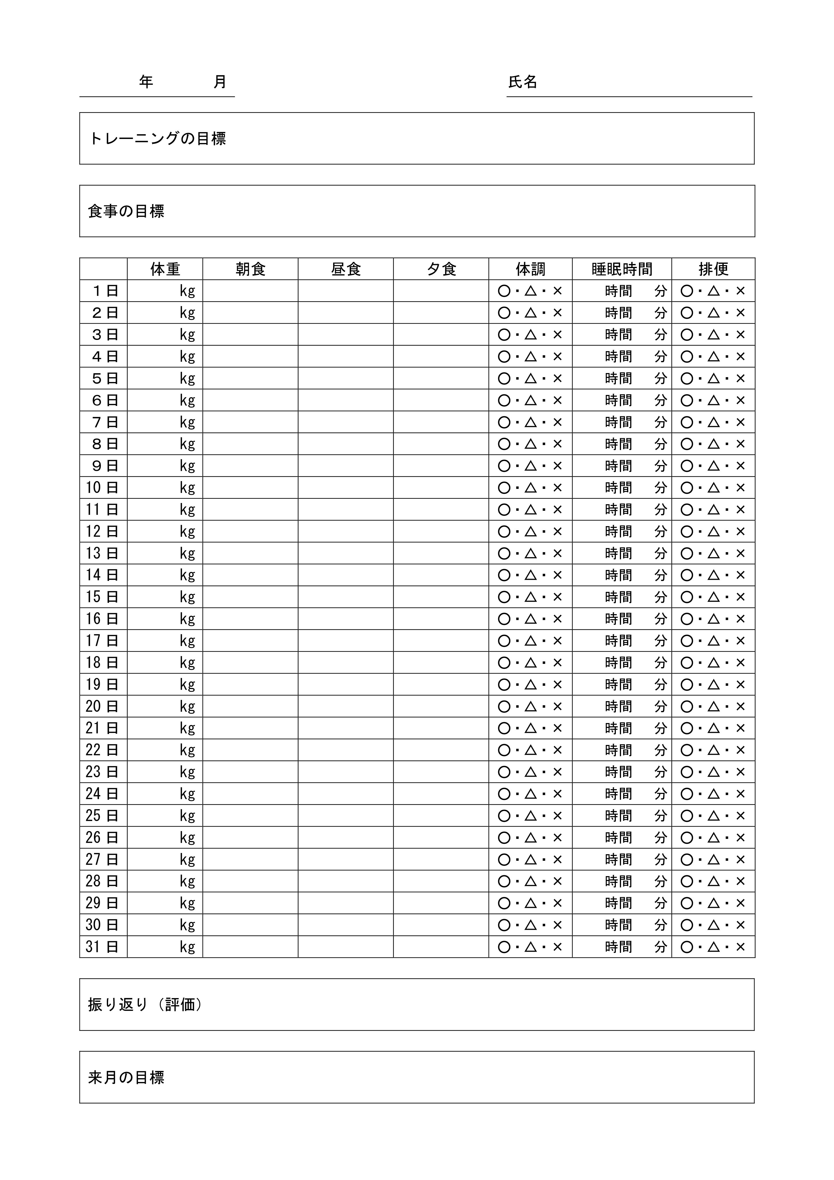 HOME無料ダウンロード『子どものためのスポーツ食トレ』 ダウンロードコンテンツ 表1 JPG版 体調管理表 表2 JPG版 食事内容表 表1 Word版 体調管理表 表2 Word版 食事内容表 書籍の詳しい内容とご購入はこちらへ 『子どものためのスポーツ食トレ』亀井明子 監著 B5判/80ページ/カラー/¥1,980(税込)