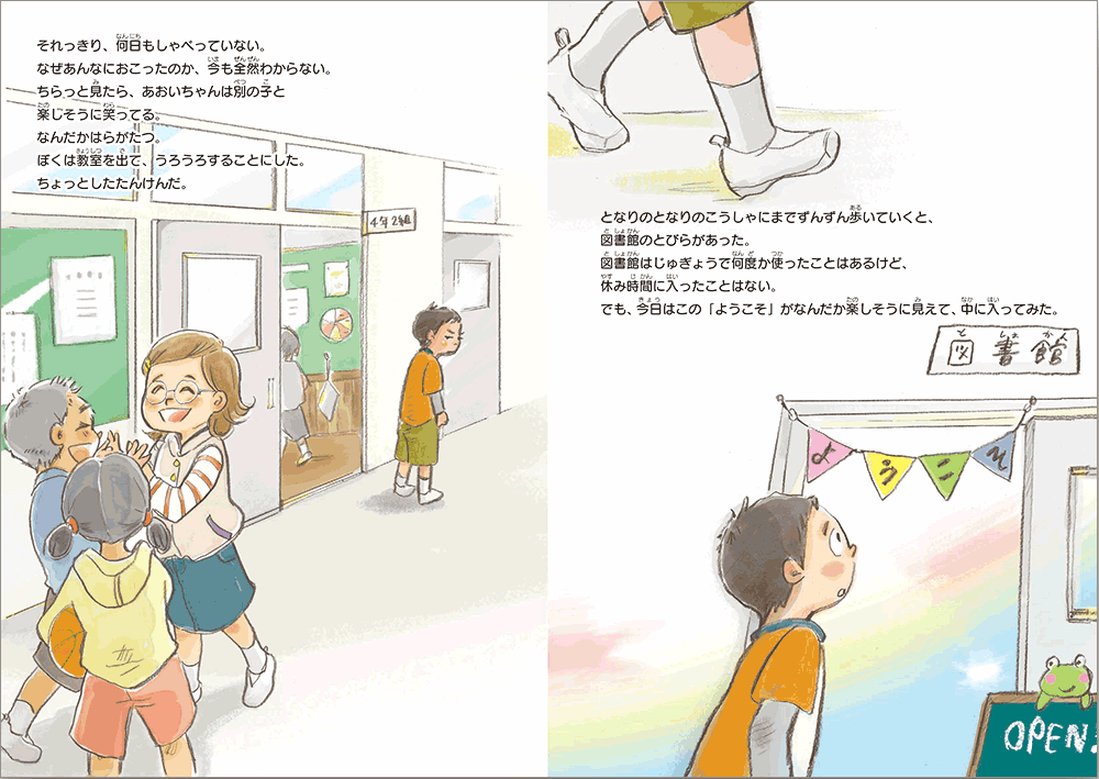 どんな時でも子どもたちを大歓迎してくれて、前を向いて踏み出す力をくれる、学校図書館という場所を描いた絵本です。