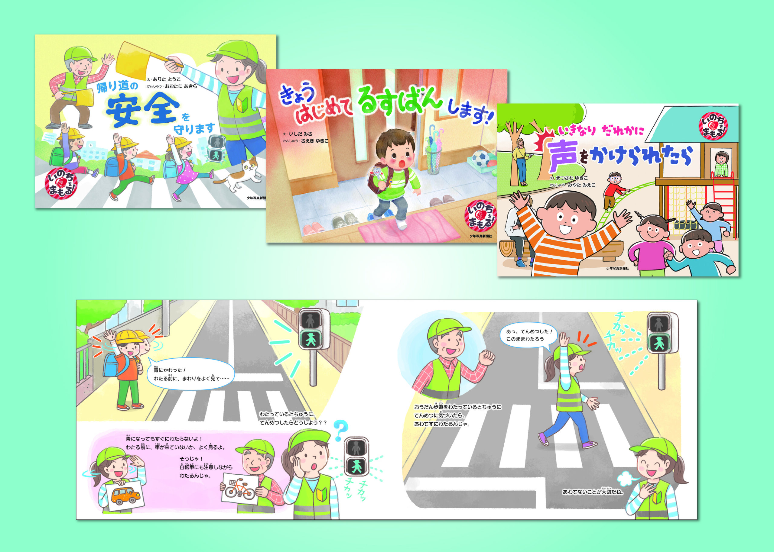 いのちをまもる!シリーズでは「交通安全」、「留守番」、「屋外で声をかけられたとき」を取り上げ、安全・防犯の基本を学びます。