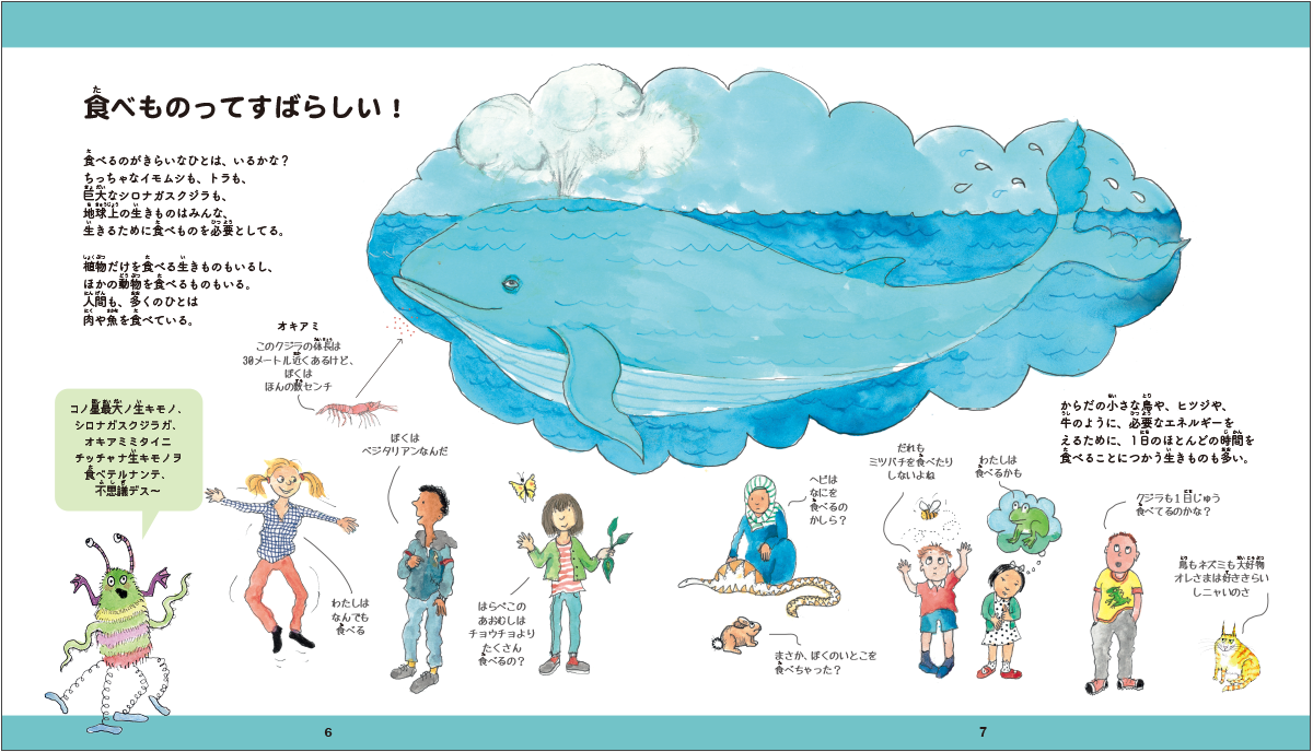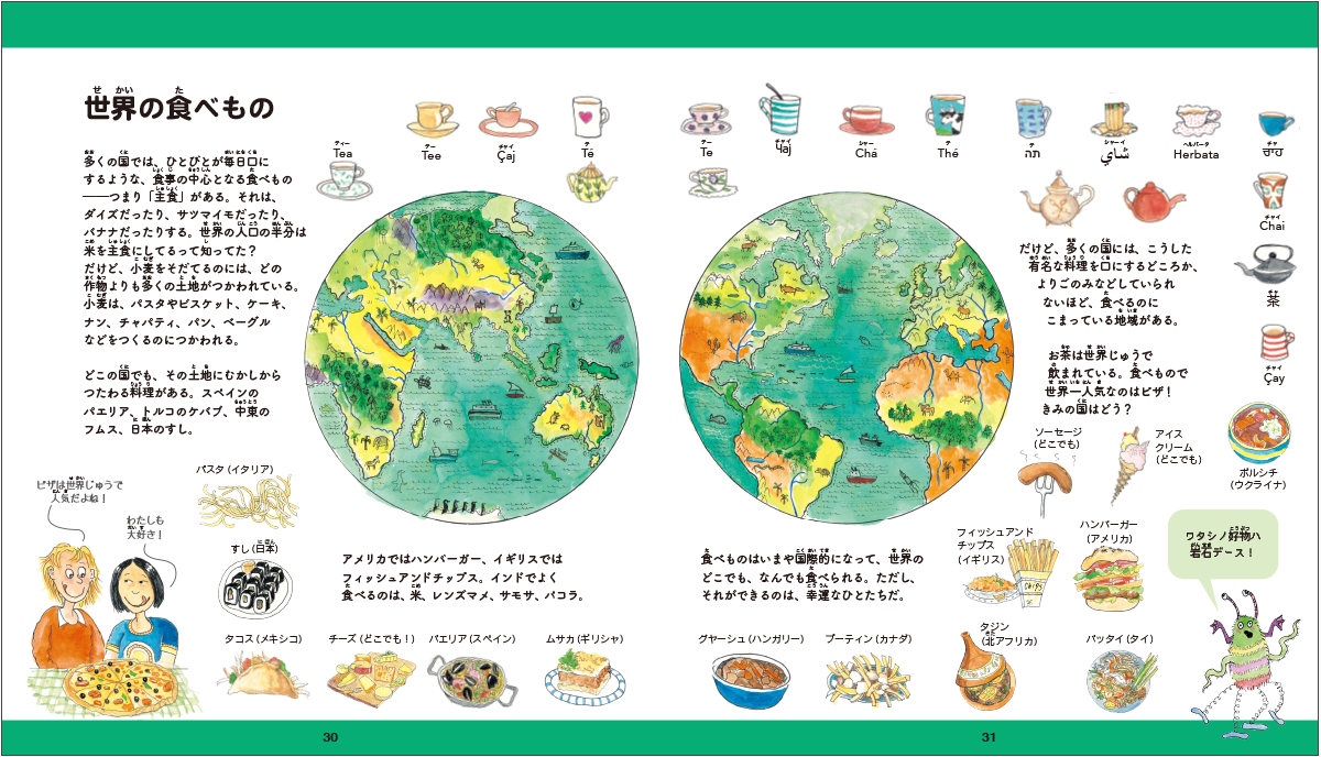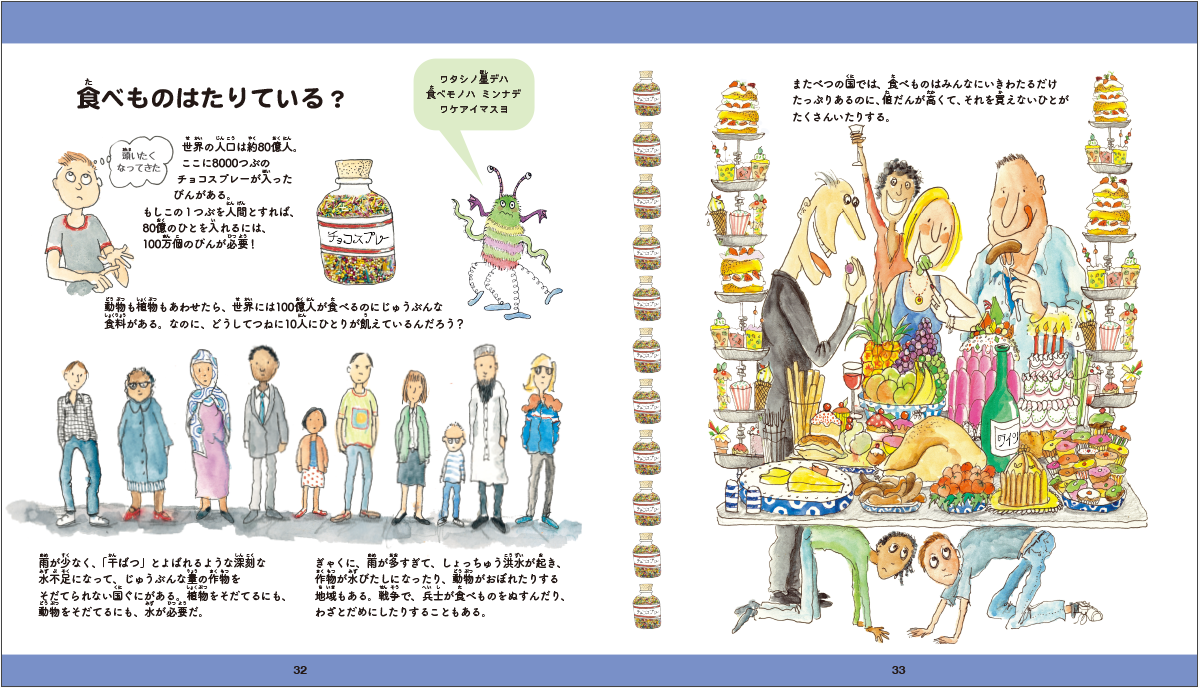 | SDGs目標②「飢餓をゼロに」をテーマに、「食べもの」について考える絵本です。世界の飢餓問題、フードマイレージなど、食・SDGsの知識が満載。調べ学習の導入にもおすすめです。