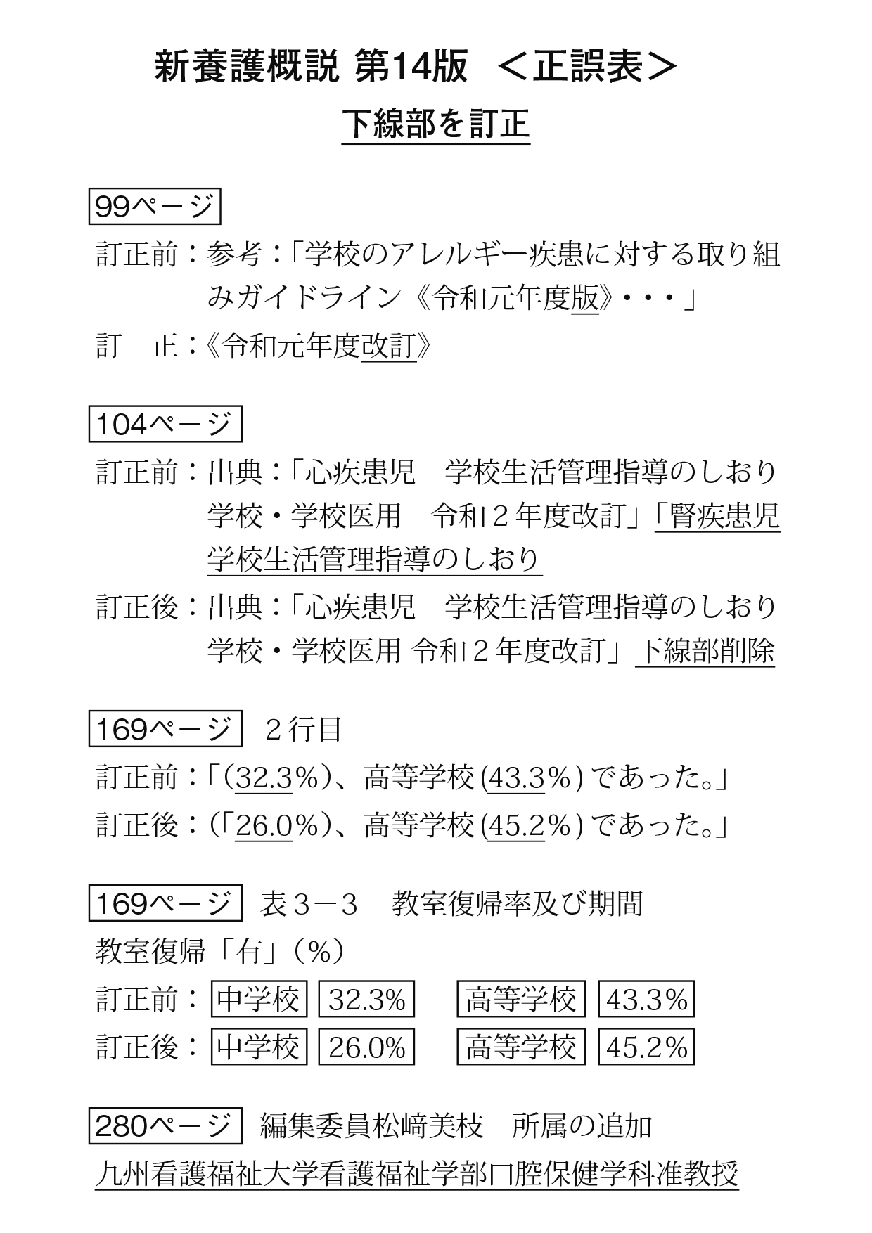 HOMEおわびと訂正【おわびと訂正】書籍『新養護概説 <第14版>』 ニュース詳細 【おわびと訂正】書籍『新養護概説 <第14版>』 『新養護概説 第14版』に誤植がございました。 ご購入された皆様には深くおわび申し上げますと共に、訂正させていただきます。 新養護概説 第14版 PDFファイル ダウンロード